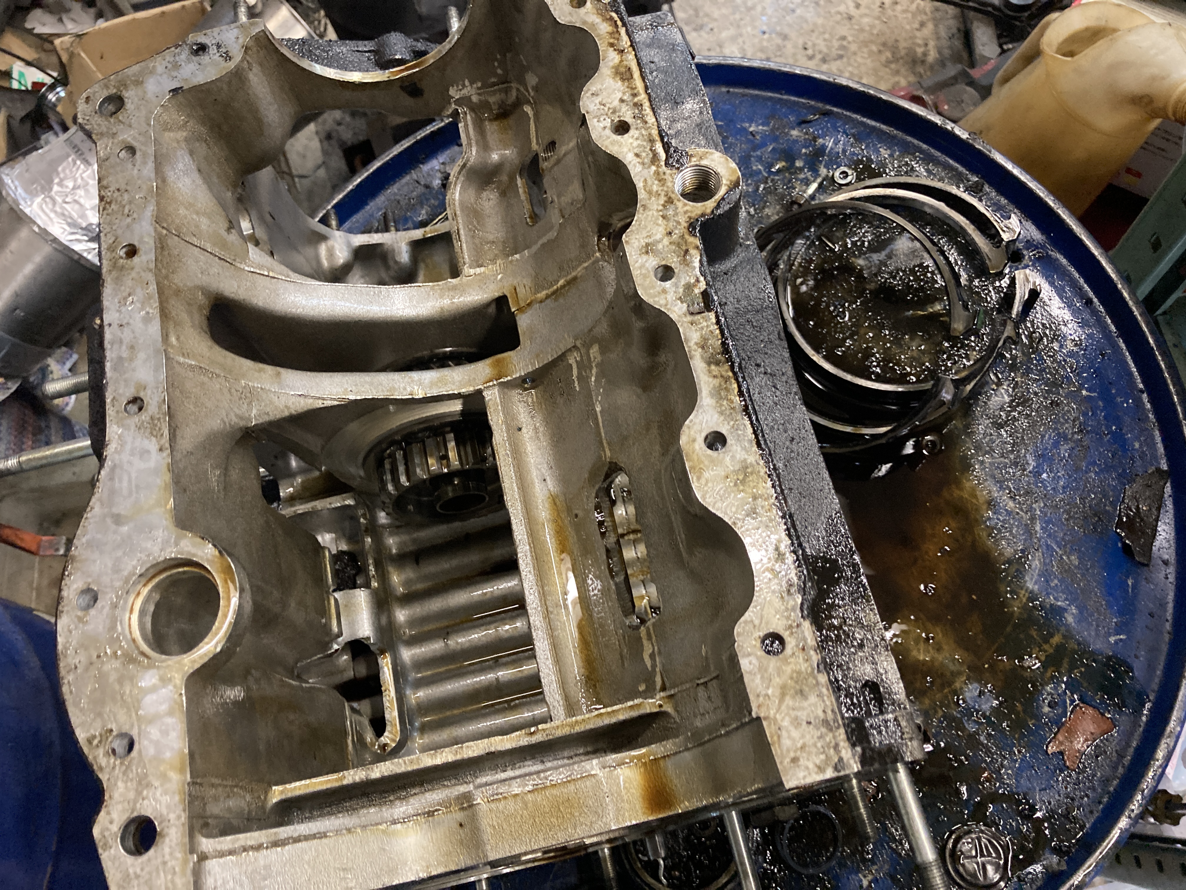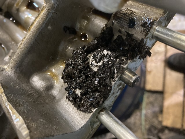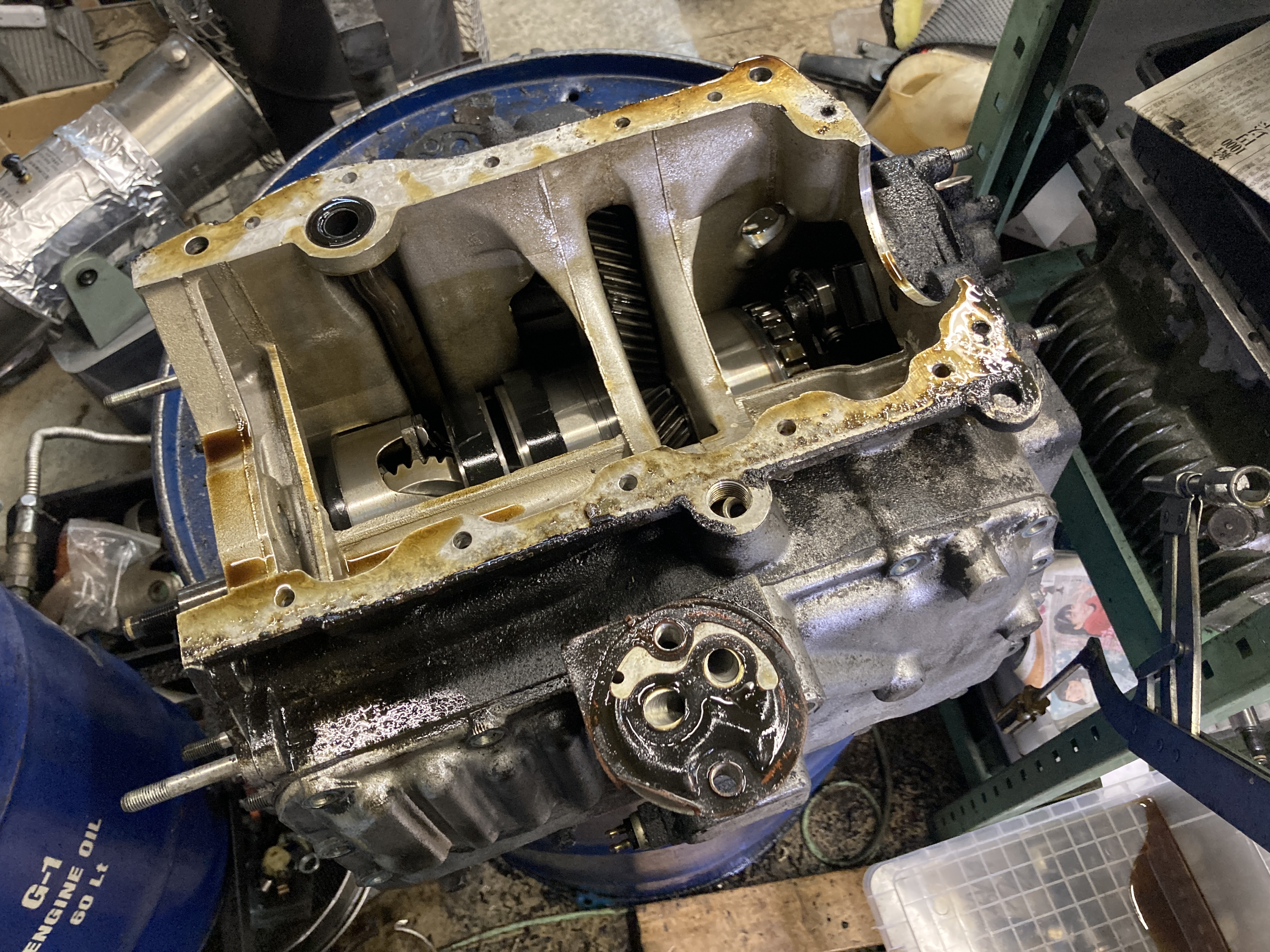 クランクシャフトフロントシールからオイル漏れの跡があります