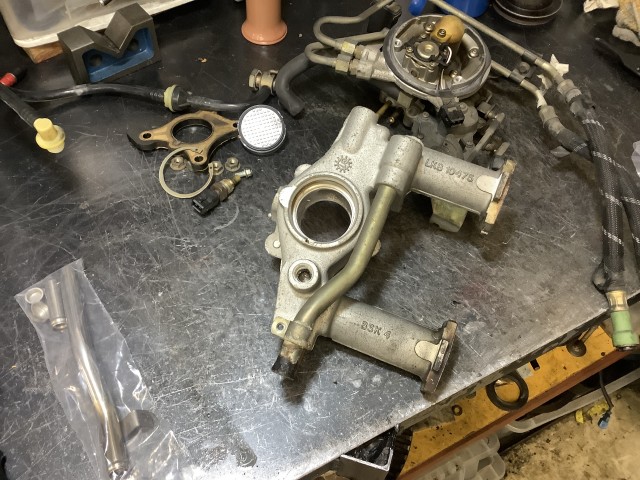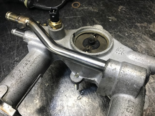 スロットルボディのオーバーホール、純正のパイプは錆てしまうのでステンレス製の物に交換します