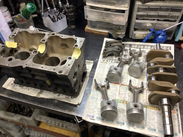 エンジンの清掃、点検、調整を行い消耗品を交換して組付けていきます