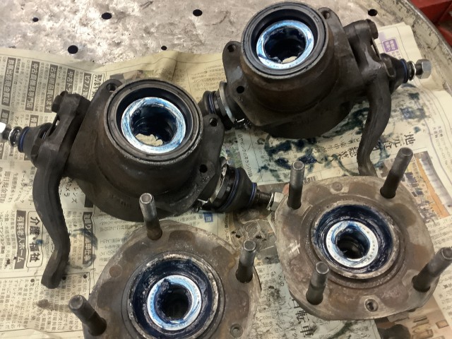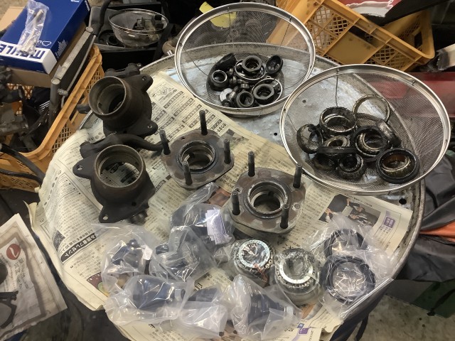 ハブの点検、ベアリング、ボールジョイント交換、ベアリングはTIMKEN製、グリスはOMEGAを使用しています