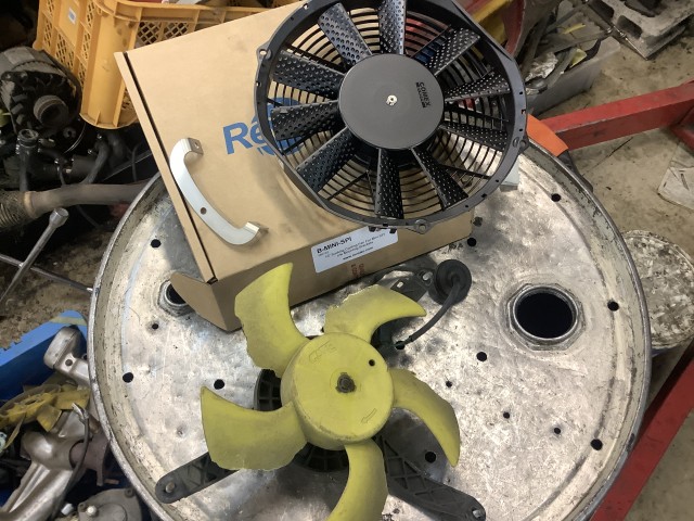 電動ファンの交換、25年以上経ちますとほとんどの車両が樹脂が劣化してしまっており正常に冷却できなくなってしまいます